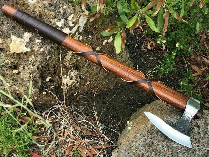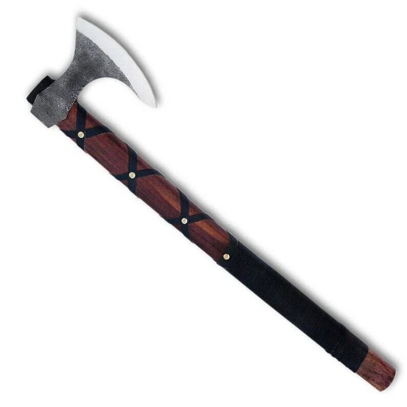 This carbon steel Viking bearded axe with rosewood shaft brings together traditional design and practical functionality. With its strong steel head and beautifully grained handle, it is a dependable outdoor tool and a striking addition to any Viking or historical collection.