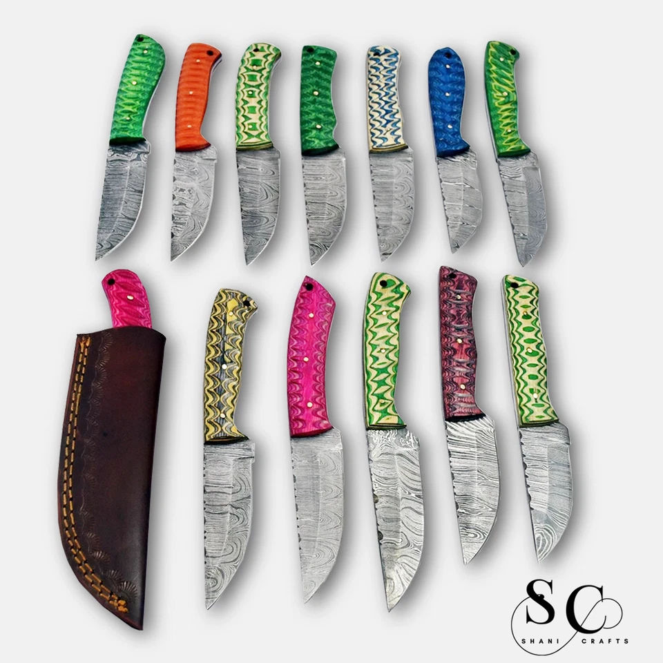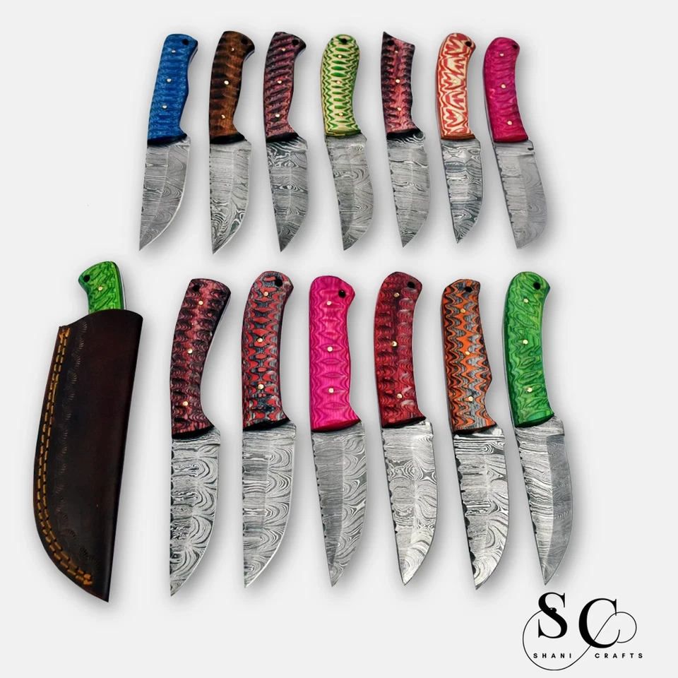 ✅ 25 individually handcrafted Damascus steel fixed blade skinning knives in assorted styles