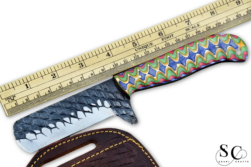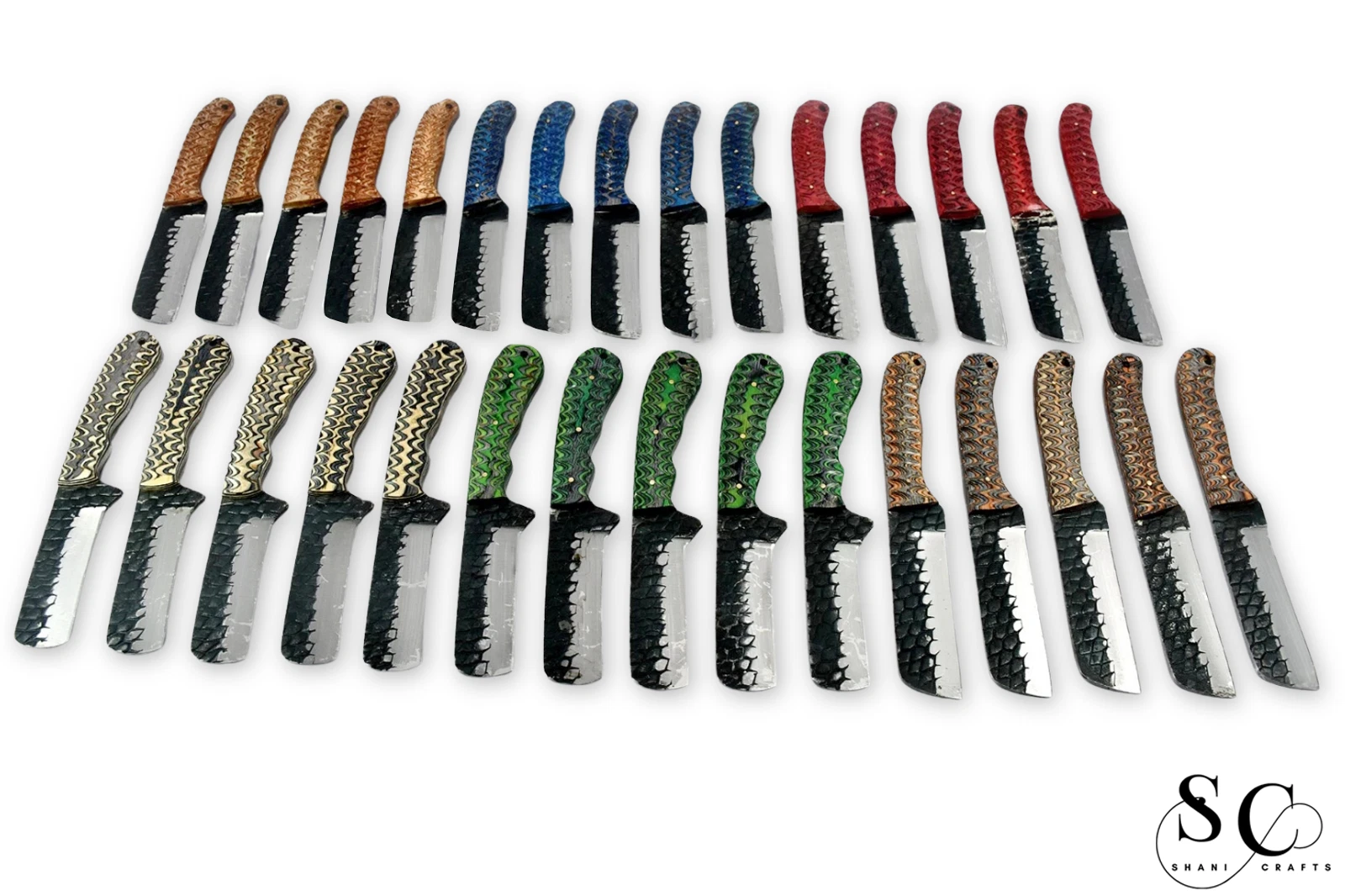 When reliability meets tradition, you get something truly built to last. This 30-piece hand-forged carbon steel Bull Cutter fixed blade knife set is designed for professionals, outdoor users, collectors, and wholesale buyers who demand serious cutting performance, classic utility, and outstanding value in every single piece. With exotic multi-color jigged handles and custom cowhide leather sheaths, this set delivers both rugged functionality and eye-catching visual appeal.