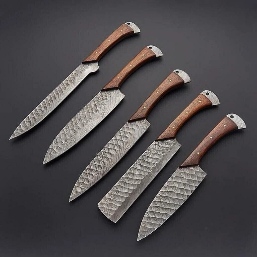 Custom Handmade Damascus Steel 5 Piece Kitchen Chef Knife Set